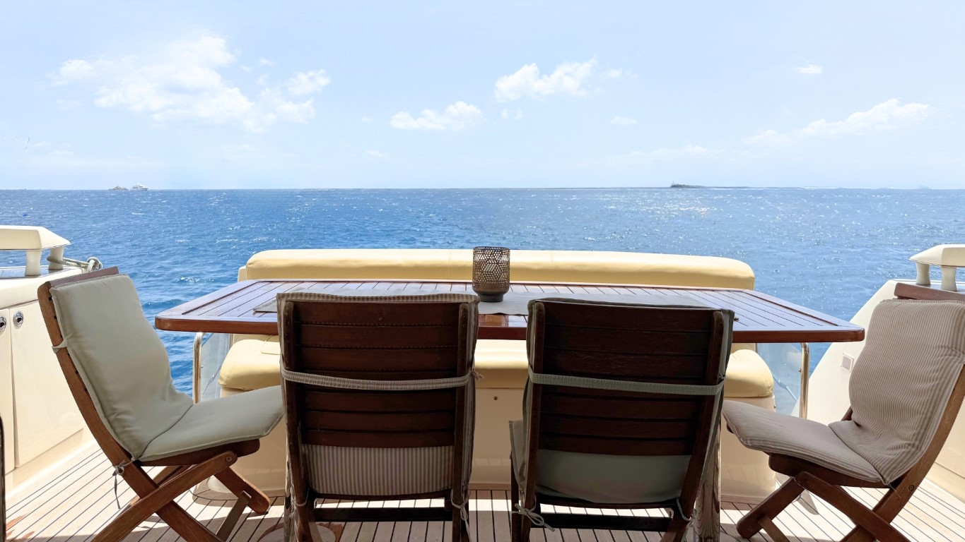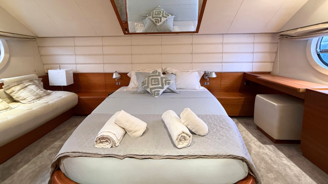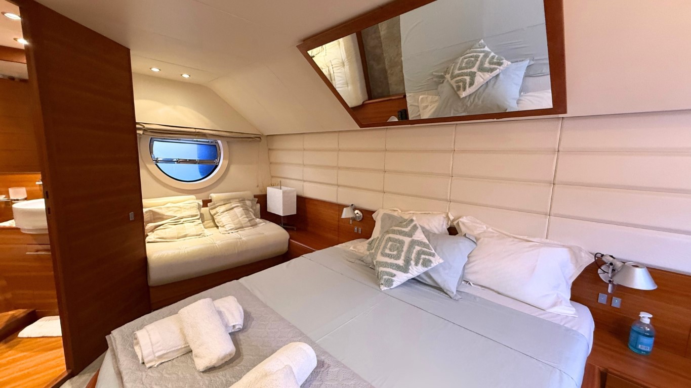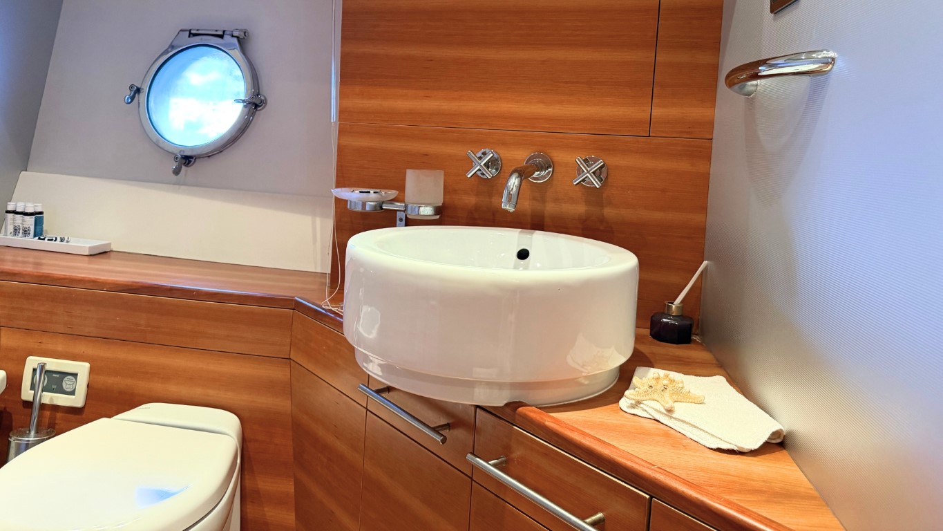 This 67-foot overall yacht features four cabins: a full-beam Master suite, a well-appointed VIP cabin, a Twin cabin—all with en-suite facilities—and a bunk-bed cabin that shares a day head upon request. Ideal for families or small groups of friends, she ensures a relaxing and private onboard experience.