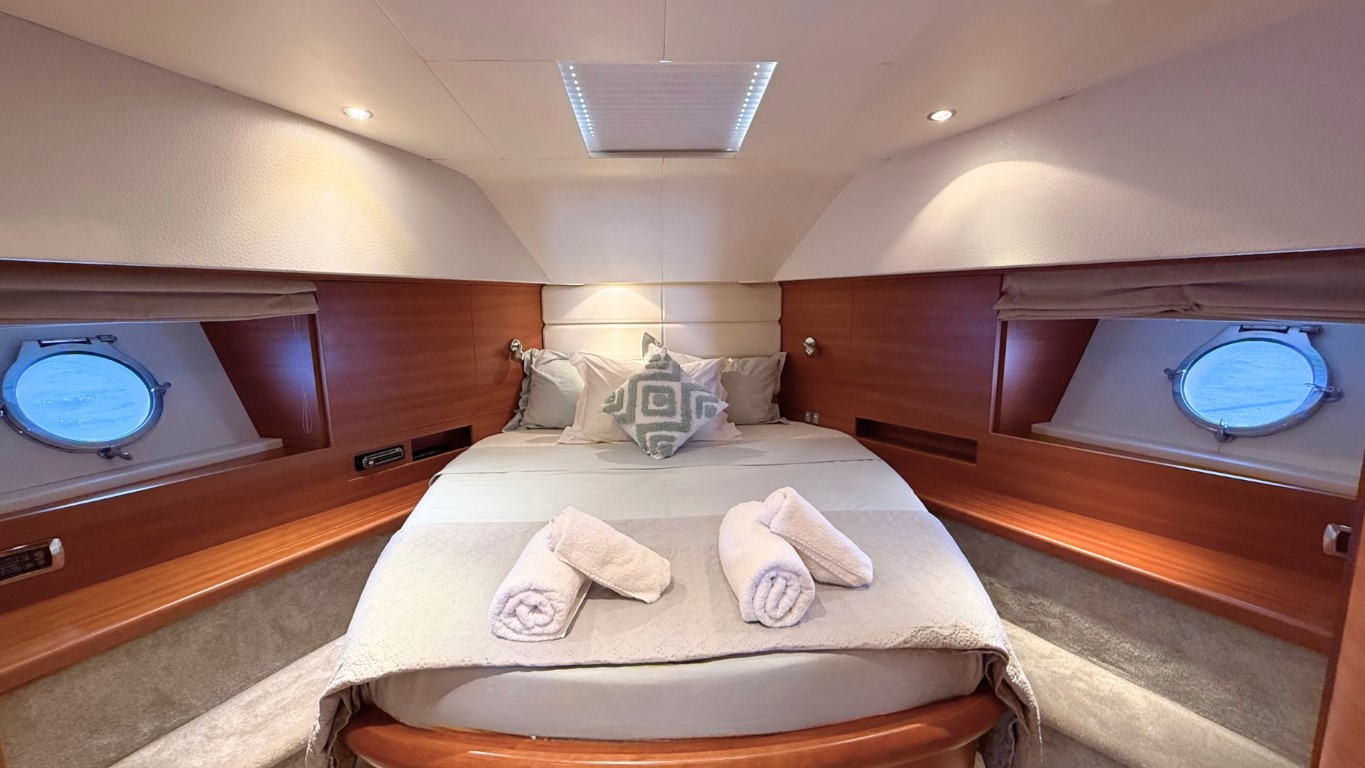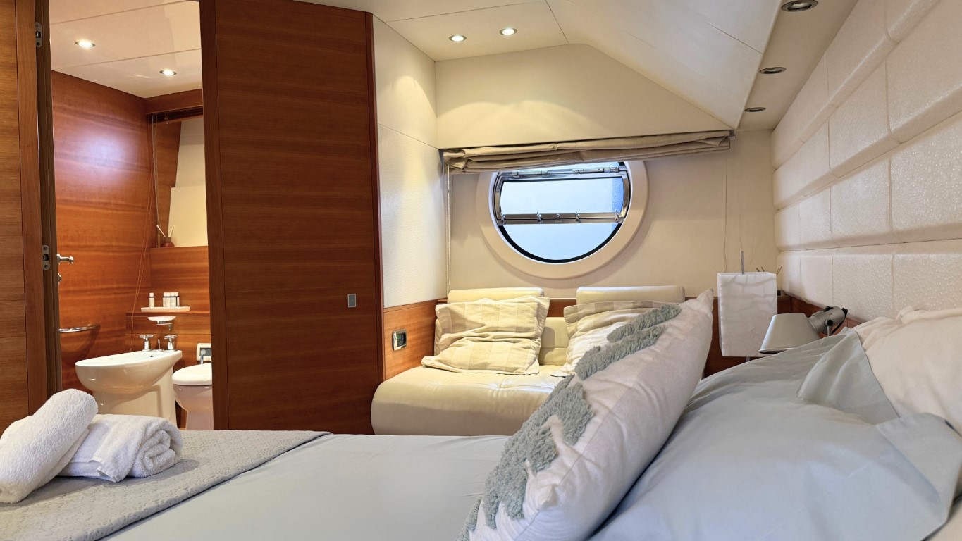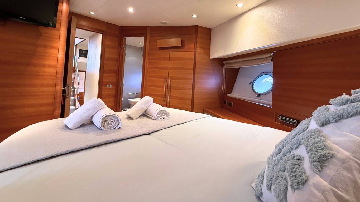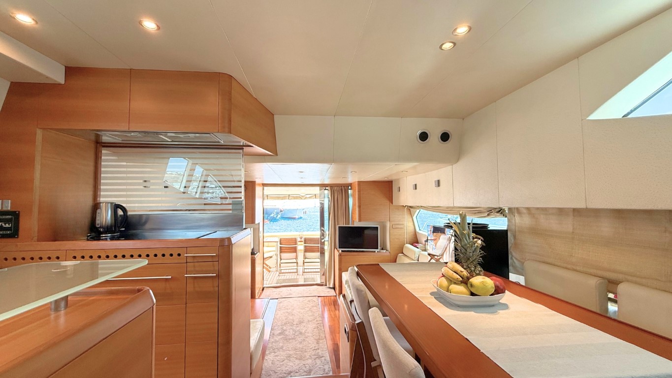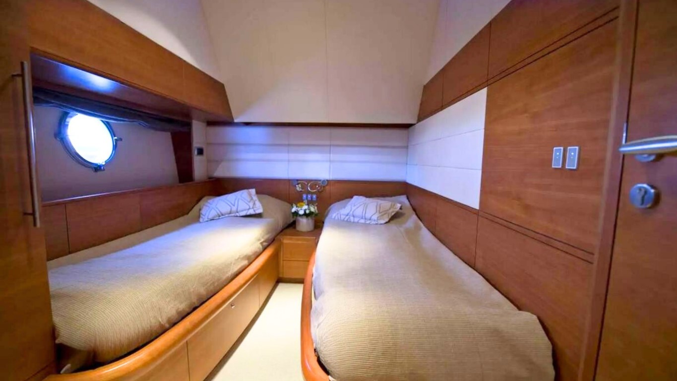 This 67-foot overall yacht features four cabins: a full-beam Master suite, a well-appointed VIP cabin, a Twin cabin—all with en-suite facilities—and a bunk-bed cabin that shares a day head upon request. Ideal for families or small groups of friends, she ensures a relaxing and private onboard experience.