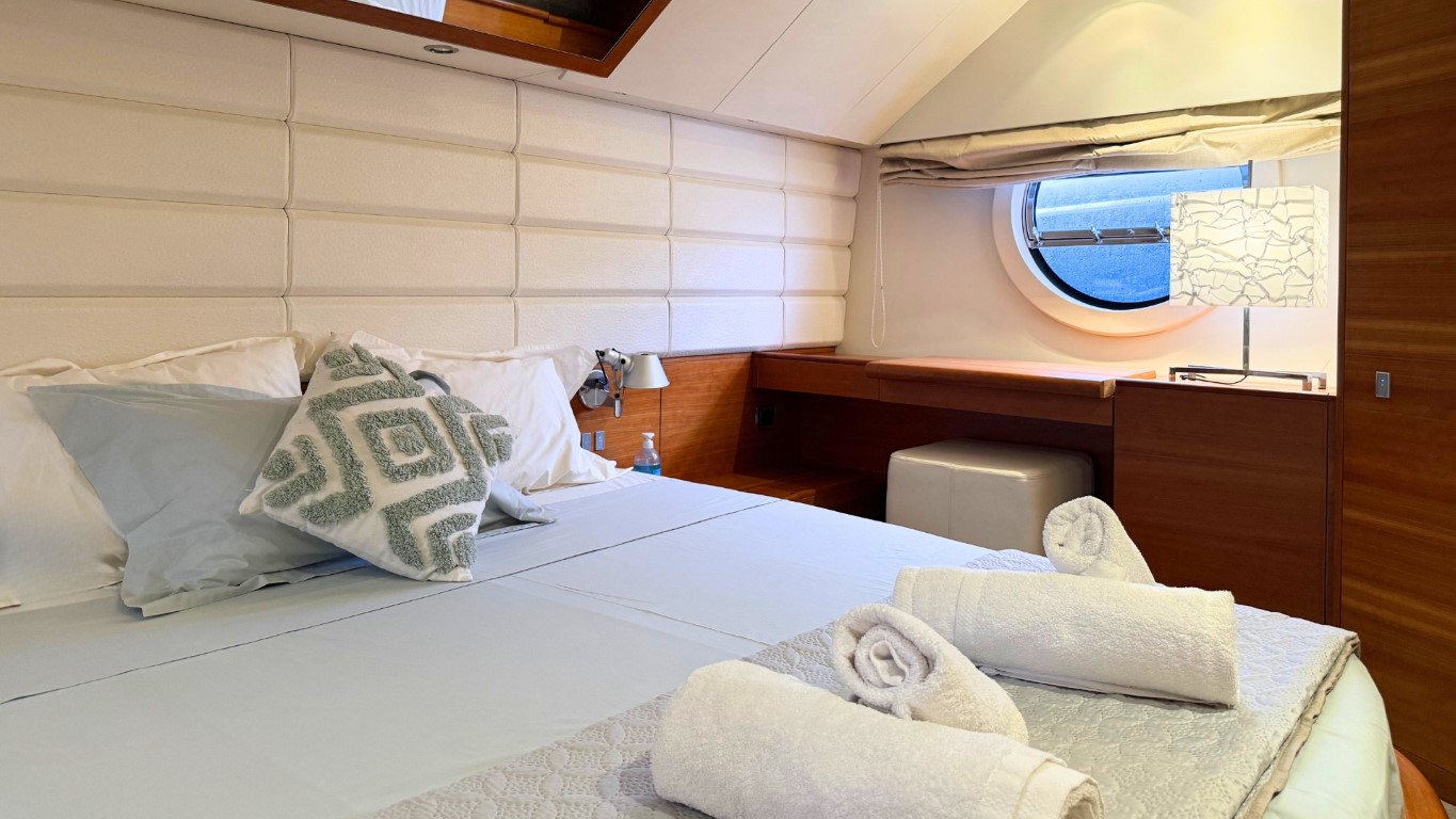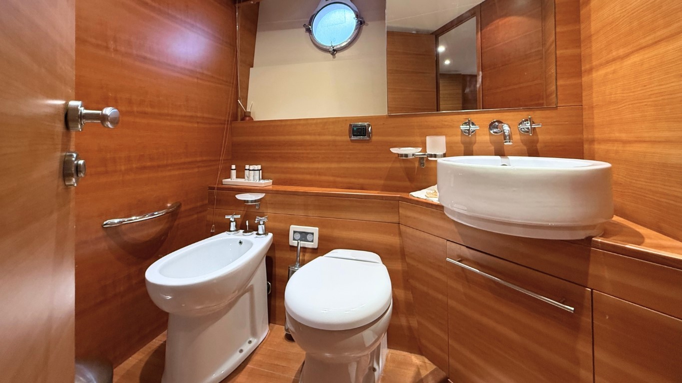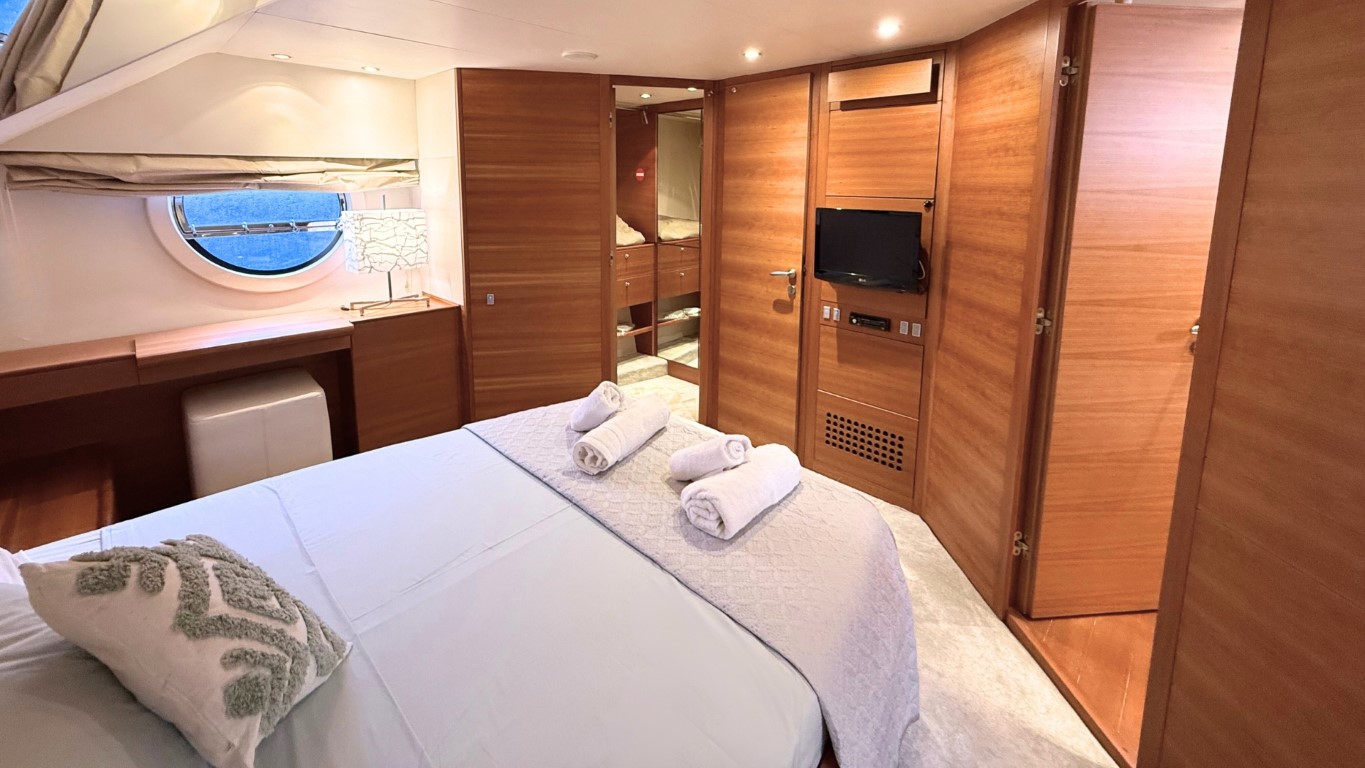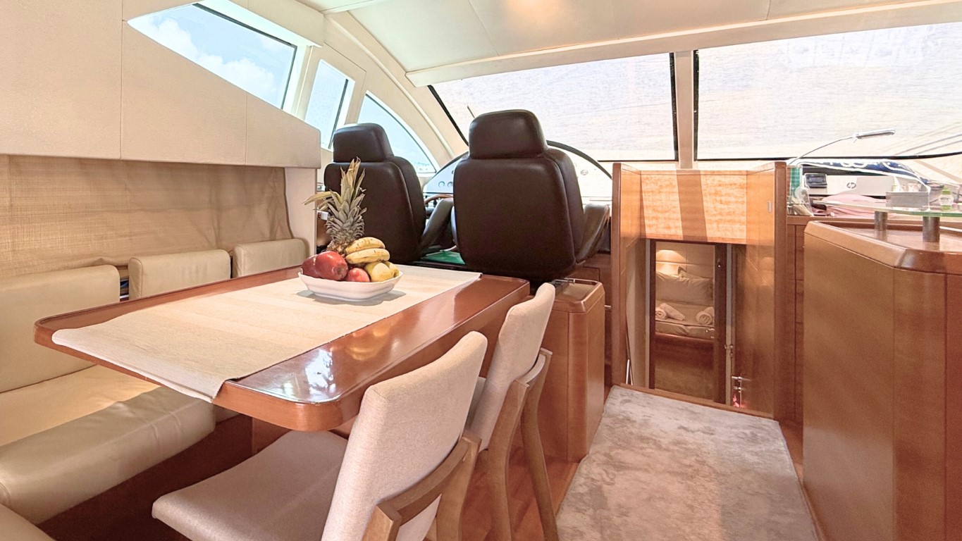 This 67-foot overall yacht features four cabins: a full-beam Master suite, a well-appointed VIP cabin, a Twin cabin—all with en-suite facilities—and a bunk-bed cabin that shares a day head upon request. Ideal for families or small groups of friends, she ensures a relaxing and private onboard experience.