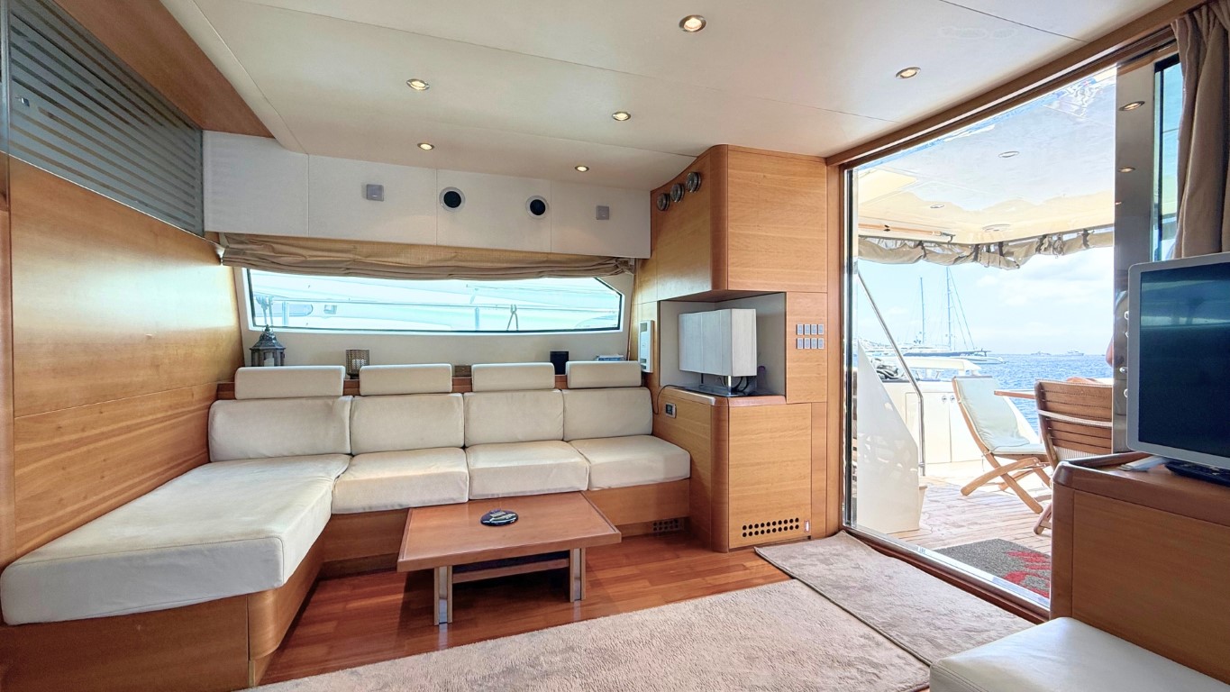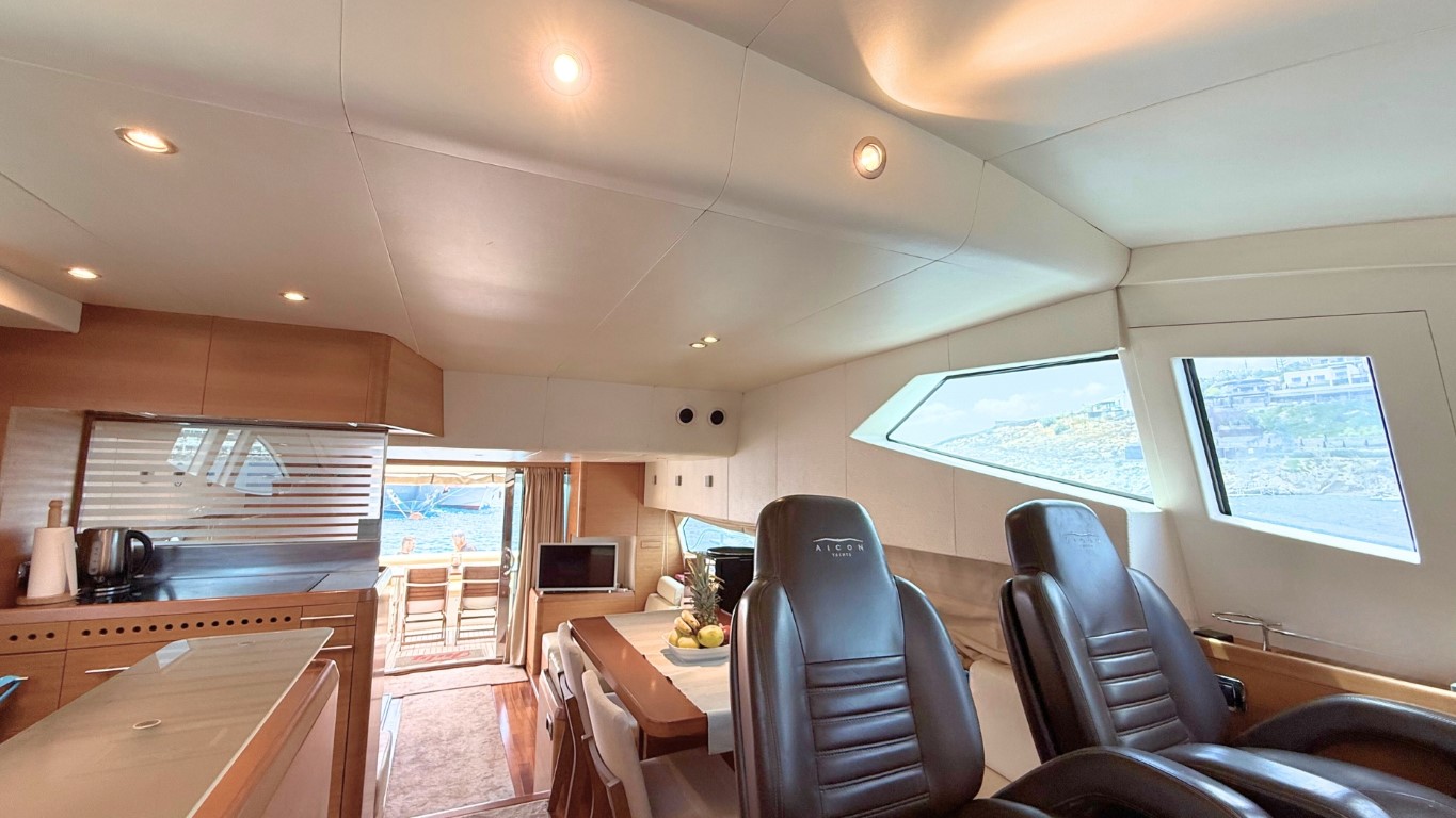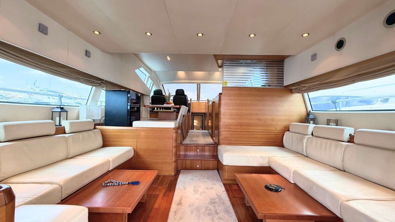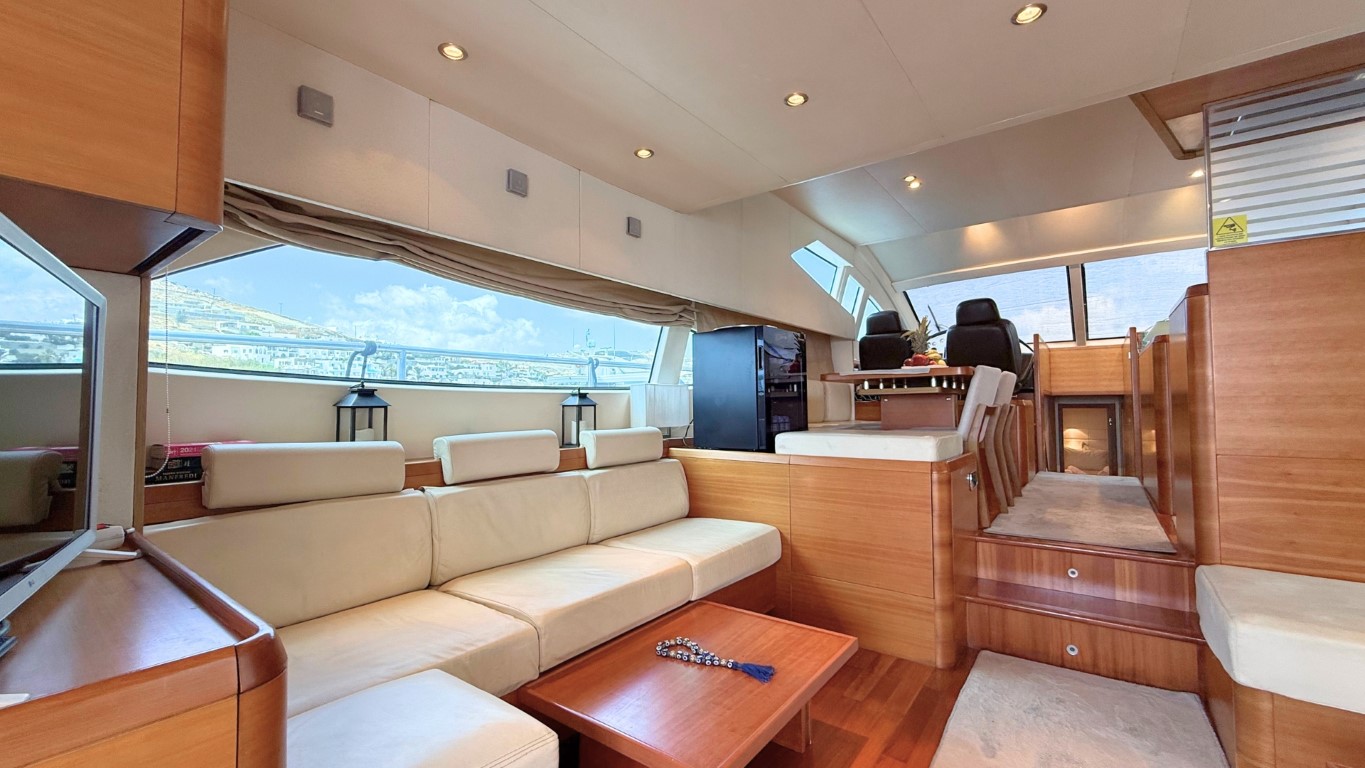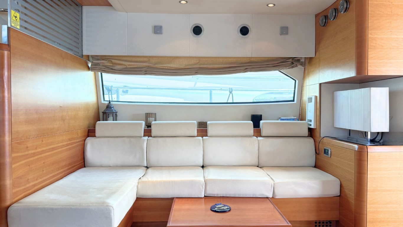She is fully equipped to impress. Her expansive flybridge, shaded aft deck for al fresco dining, and swim platform for effortless access to the sea make her perfect for soaking up the sun and exploring the crystal-clear waters of the Greek islands.