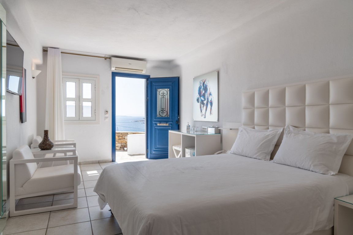 Located in the heart of the island, it offers the most romantic view of Mykonos Town (Chora) and the Aegean Sea, and it’s perfect for any couple who wants to experience magical holidays in a hidden sanctuary that looks and feels like a true earthly paradise.