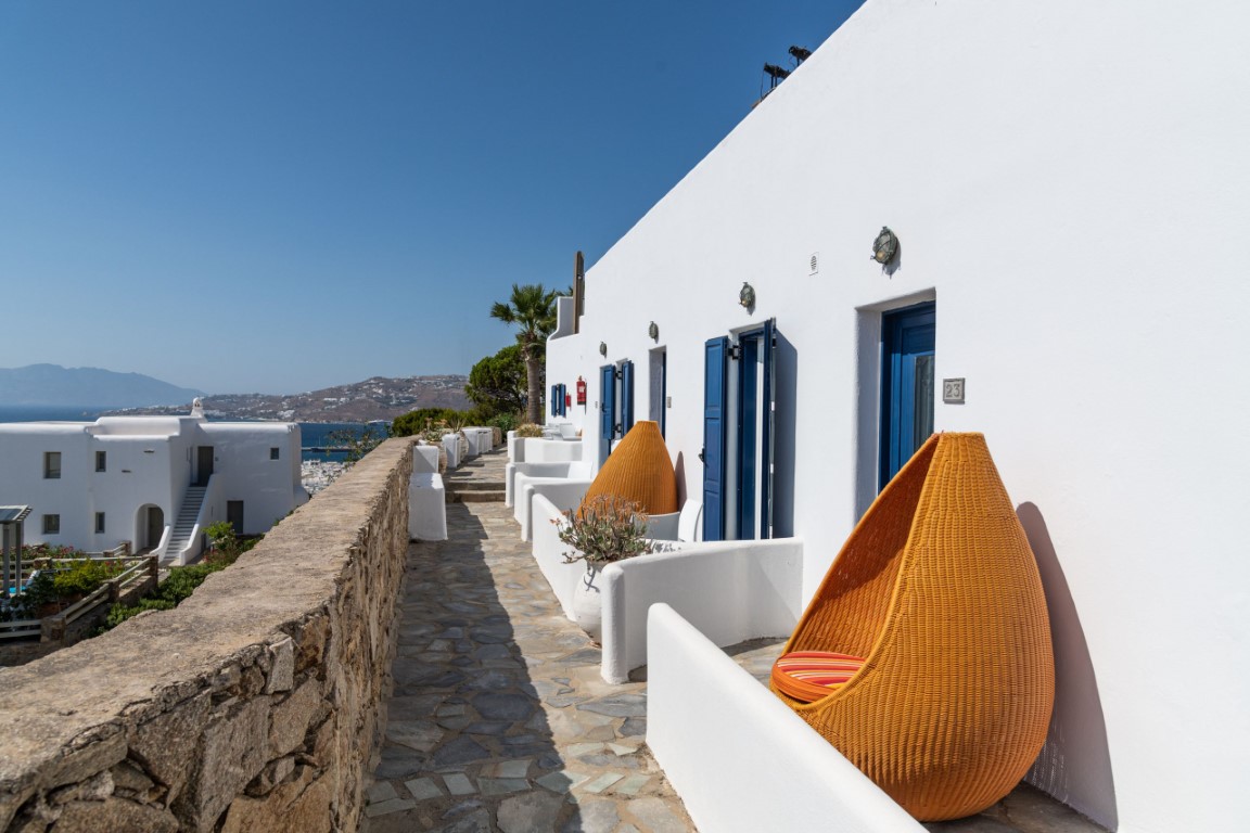 Elysium is the most famous exclusive gay hotel in Mykonos thanks to its distinctive elegant luxury and incredible atmosphere.