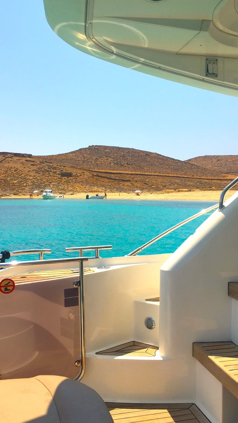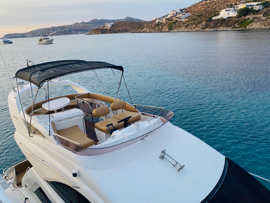 Should you be dreaming of a one-of-a-kind experience or a complete escape in the spectacular big blue, the Fairline 43 Flybridge is the perfect yacht to charter in Mykonos!