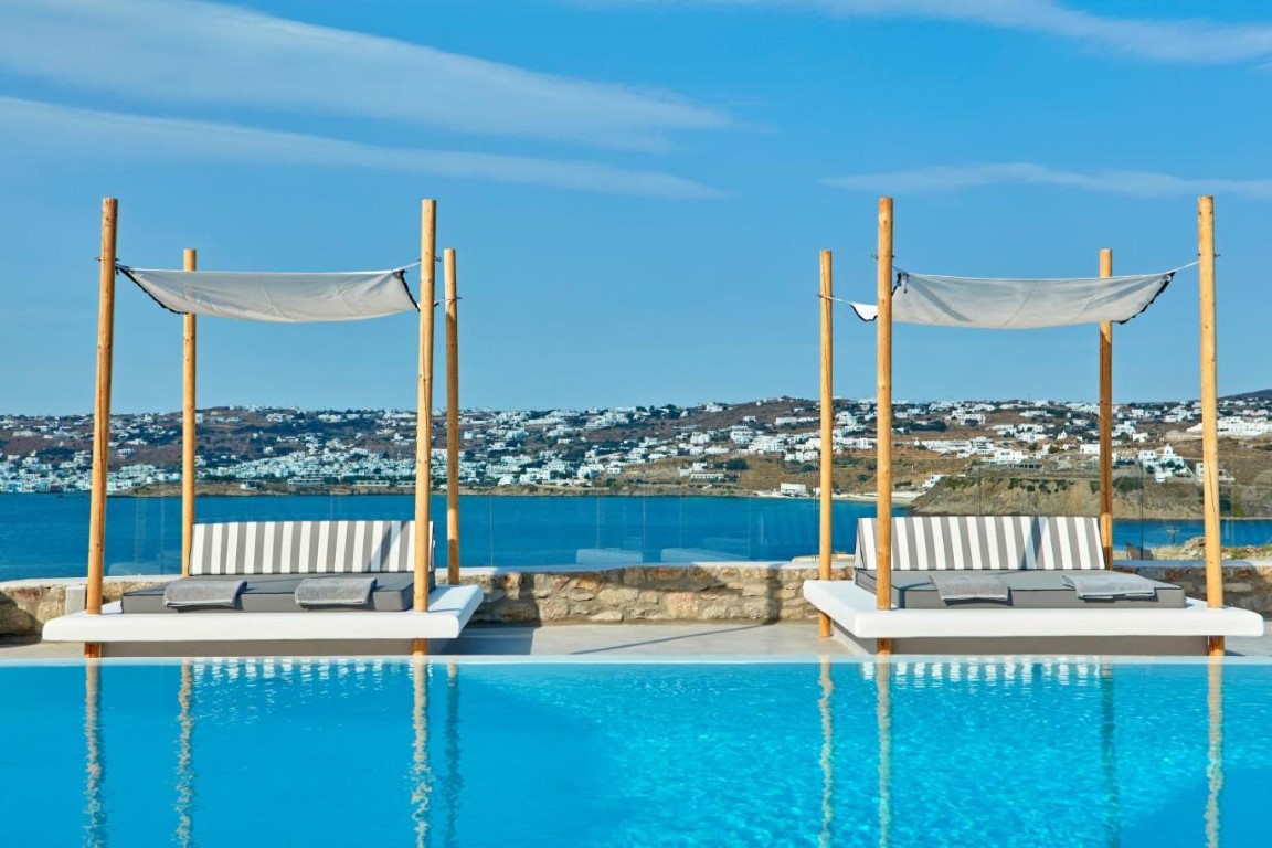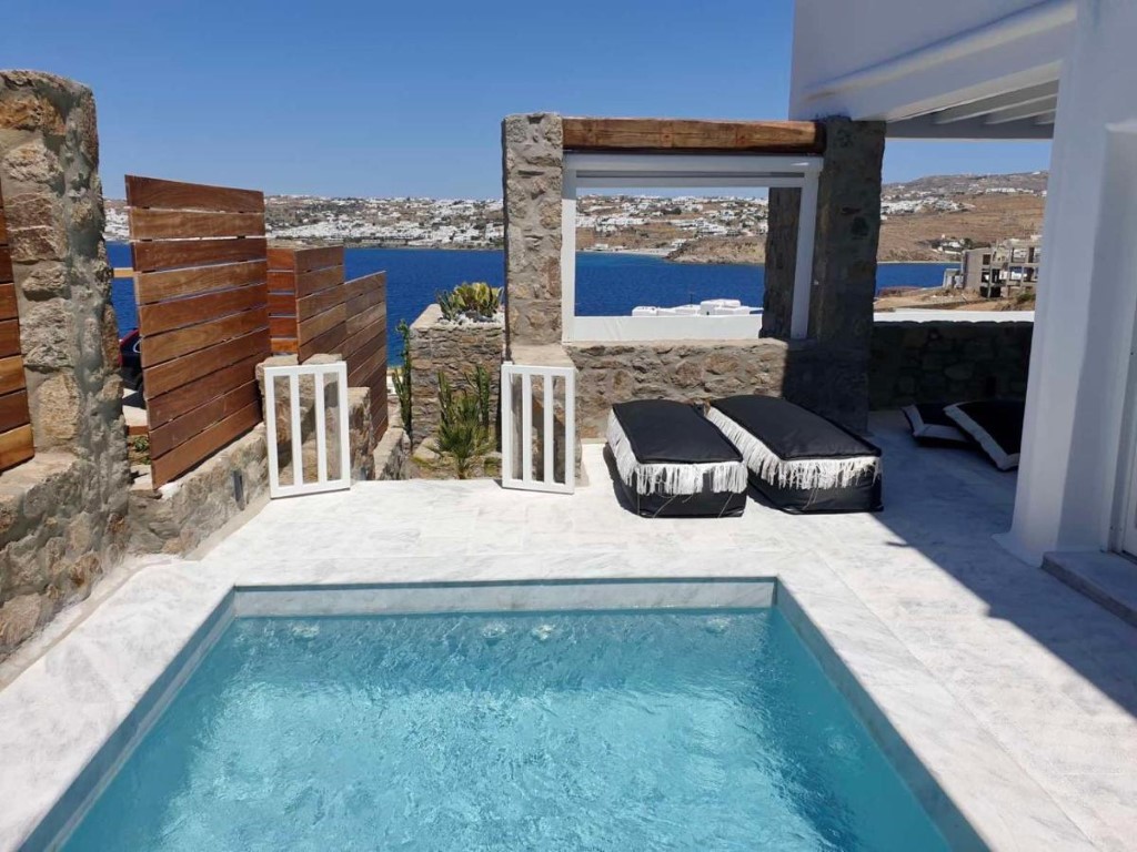 Located on a hill in the Kanalia Village of Ornos, it has a mesmerizing view and provides a combination of privacy, hospitality, and tranquility that is really hard to find in the cosmopolitan Mykonos island.