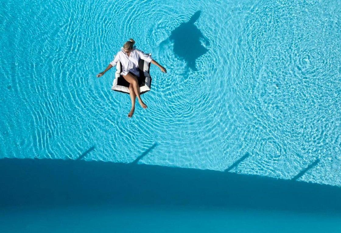 The pool area has an impeccably designed deck with stylish sunbeds and umbrellas for endless moments of swimming and sunbathing in an incredibly relaxing and at the same time magical scenery that will rejuvenate all your senses.