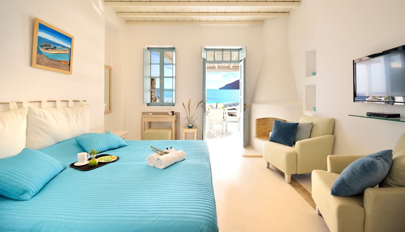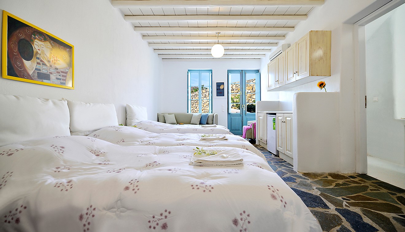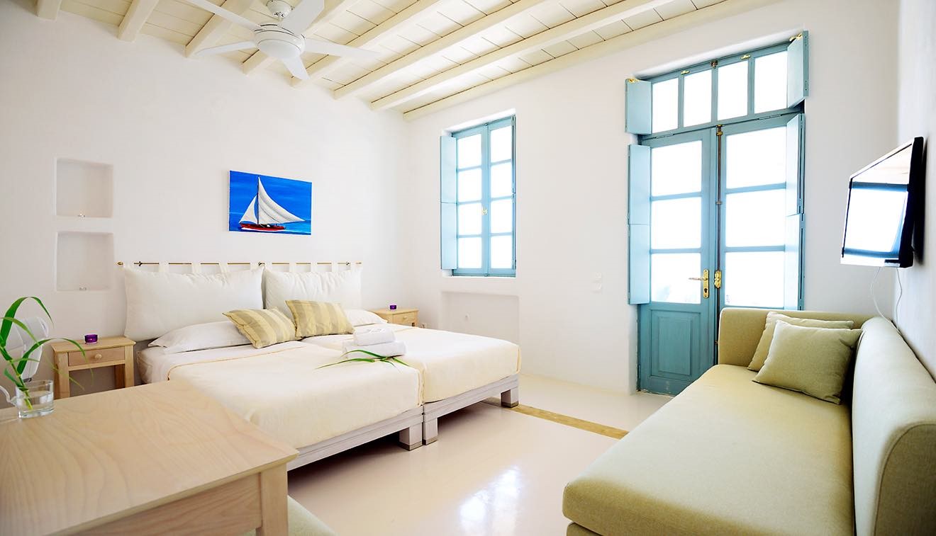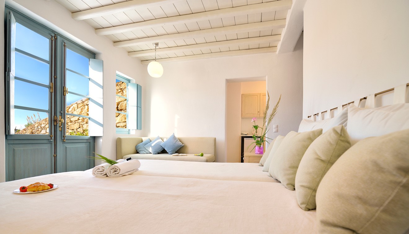 Built with the Cycladic architecture principles in mind and giving a genuine Mykonian essence with a perfect view of the Aegean Sea, the property consists of 15 stylish suites of varied types that are created to offer a completely luxurious experience to their guests.