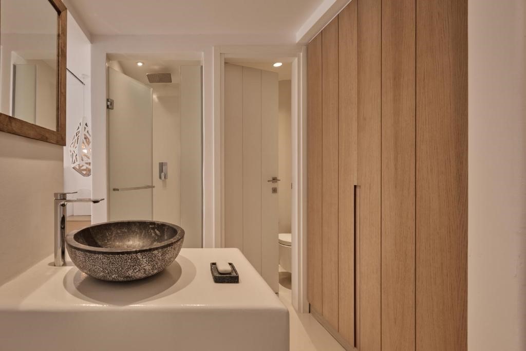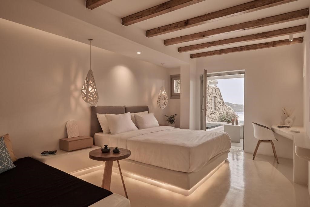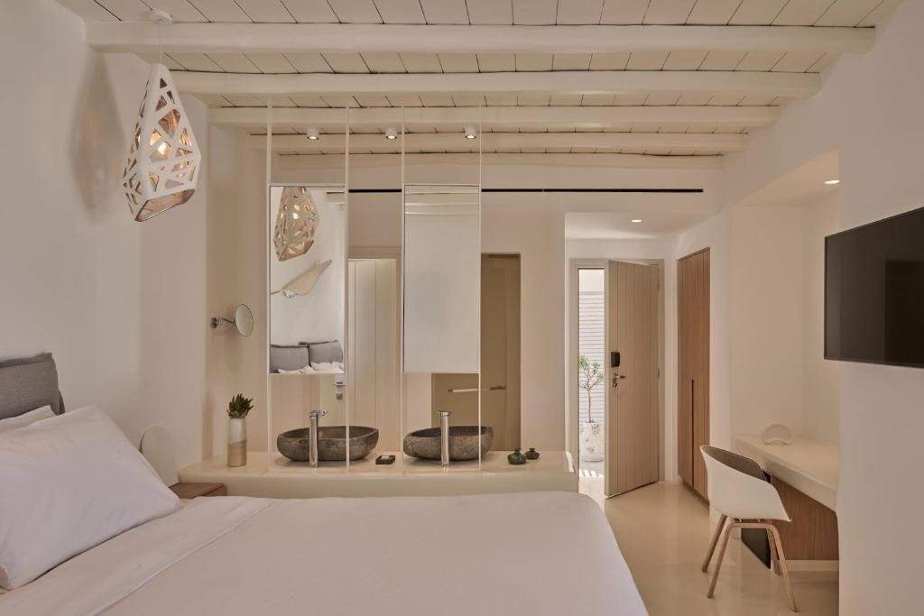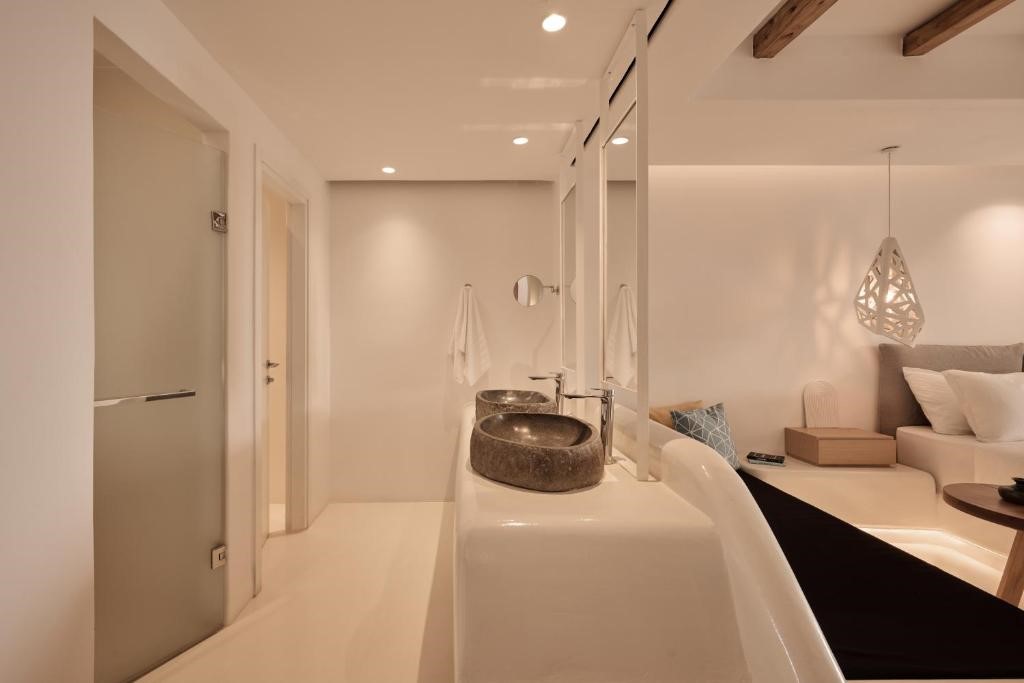 The suites are designed to glorify the ethereal sunlight that embraces the Aegean Sea, inspired by Greek Mythology tales and heroes, with a minimalistic concept that blends the best out of the traditional and contemporary island architecture.
