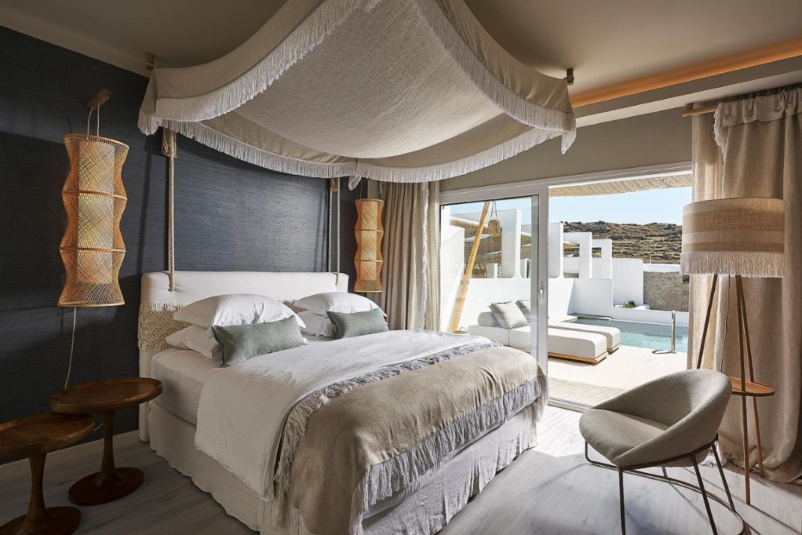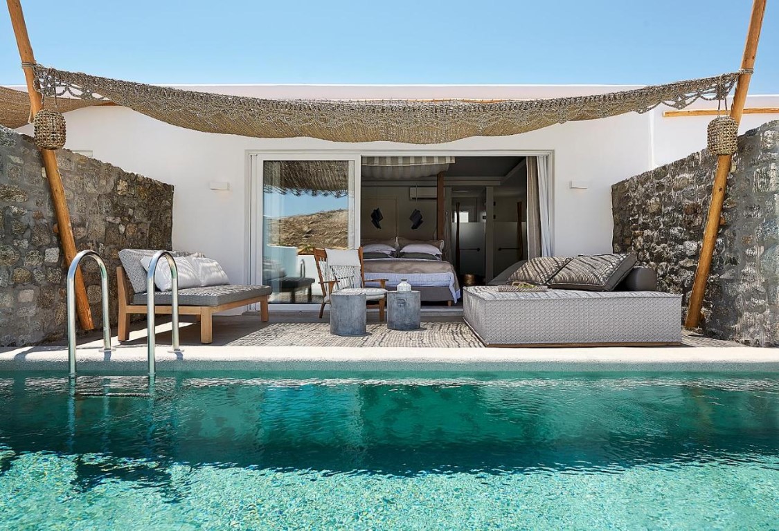 The hotel exudes the cosmopolitan character and charm of Mykonos, while offering travellers a heaven of tranquil delight.
