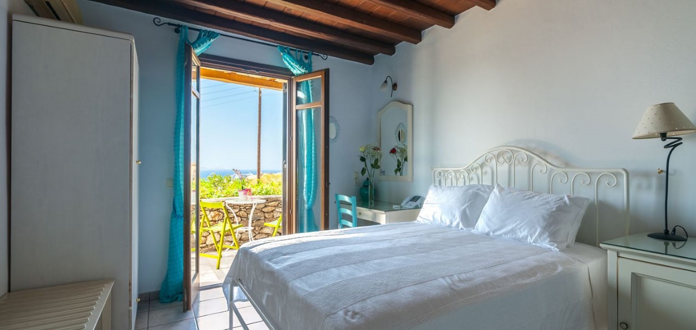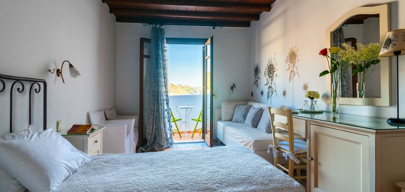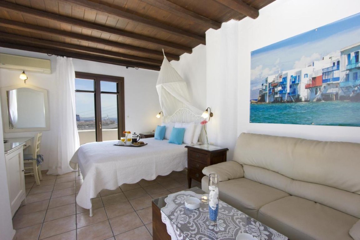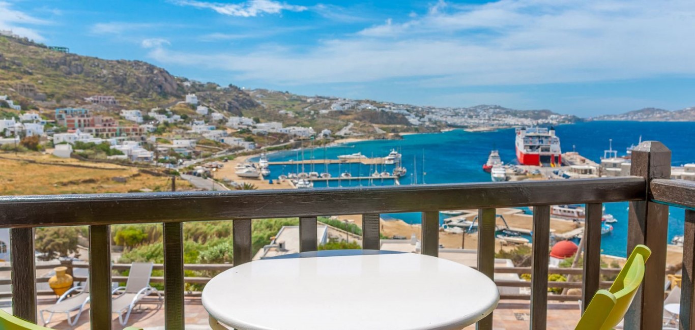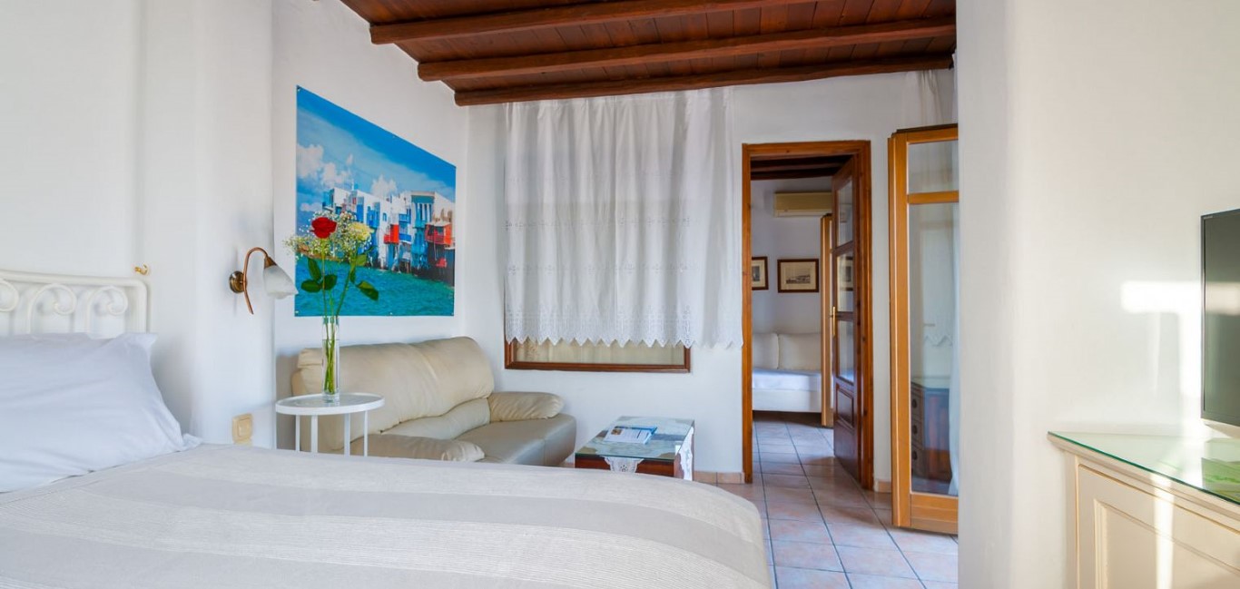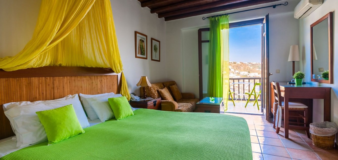 The Superior rooms are even more spacious and offer relaxing sitting areas, LCD TVs, premium bathrobes and slippers, and balconies with a magnificent view of the sea and the picturesque Chora.