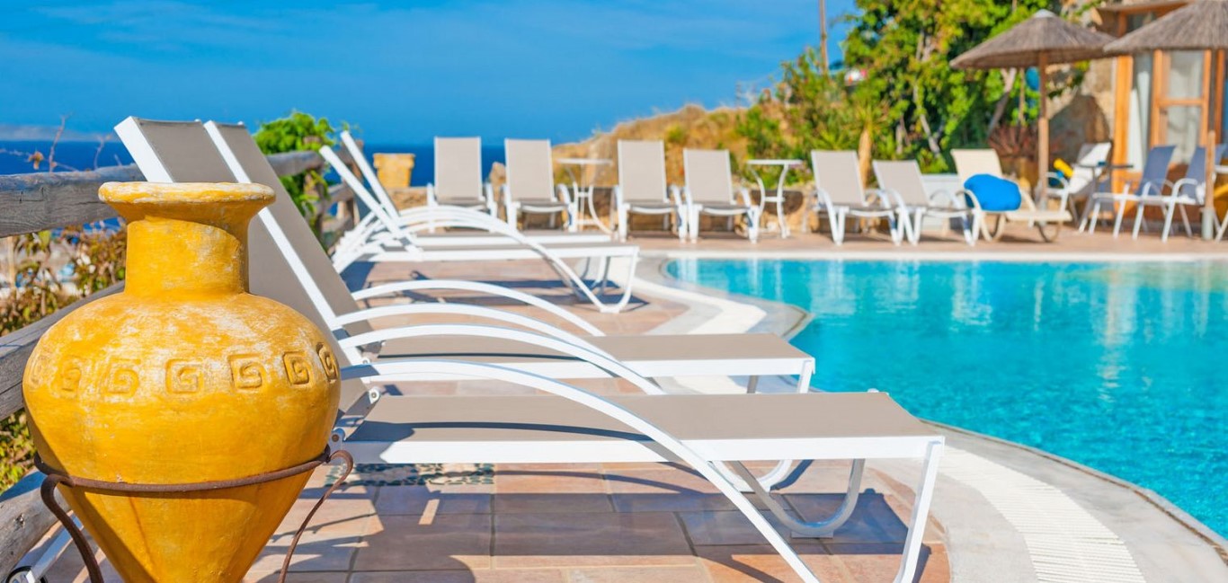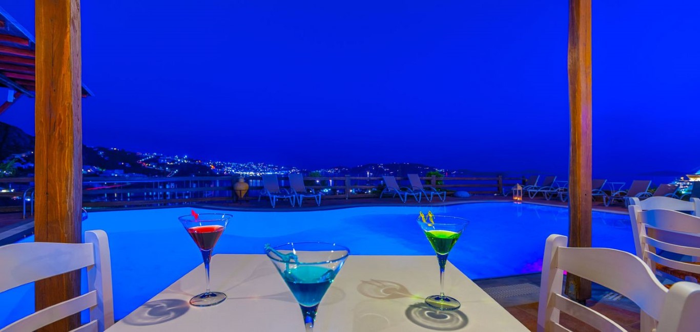 The spacious swimming pool is surrounded by cozy sunbeds where you can enjoy the beautiful sea view while sunbathing and tasting delicious coffee, refreshing drinks, light snacks and colorful fresh salads served from the bar.