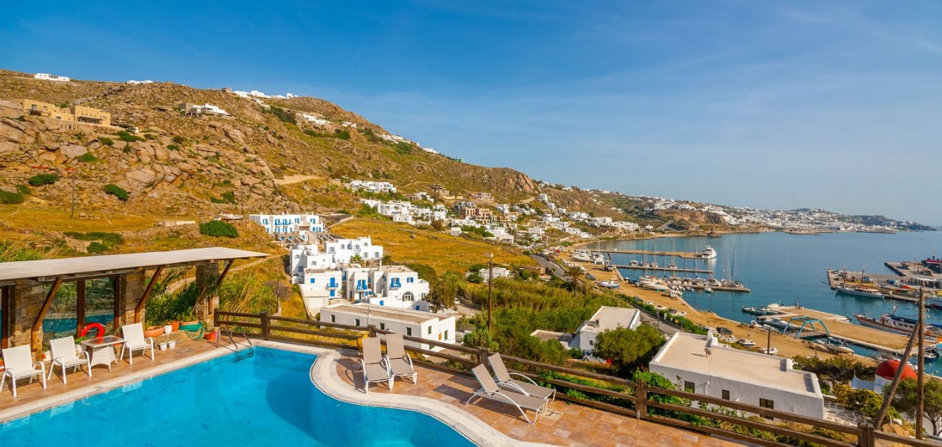 It is placed on a hill above Tourlos Bay, and from its ideal location, it offers enchanting scenery to every guest, as well as easy access to the most famous beaches and cosmopolitan destinations of the island.
