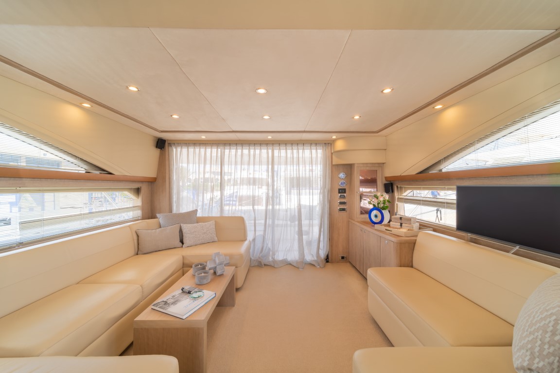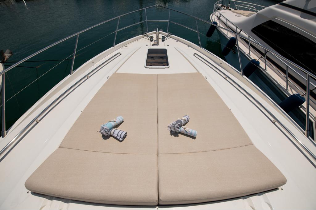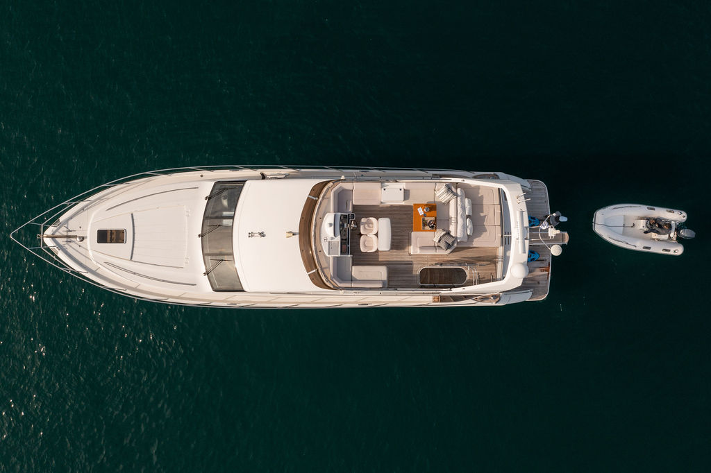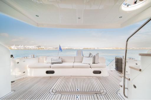 With a generous aft deck, a well-designed flybridge, and a spacious swimming platform, the Princess 62 invites guests to unwind in style. With a professional crew of two ensuring impeccable service, this yacht promises a luxurious and seamless yachting experience.