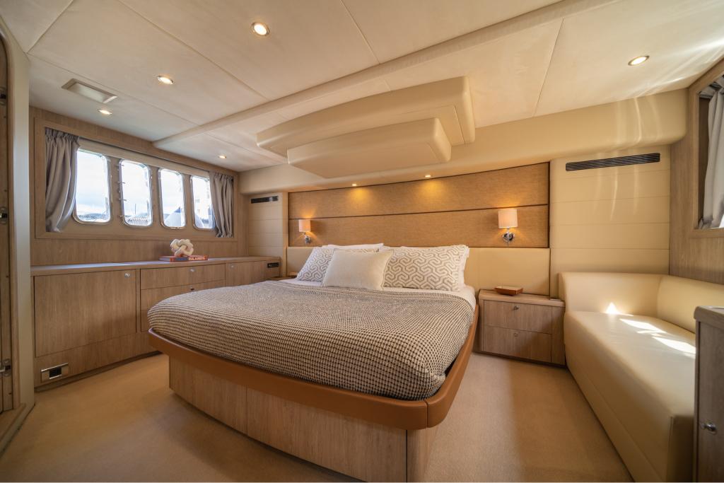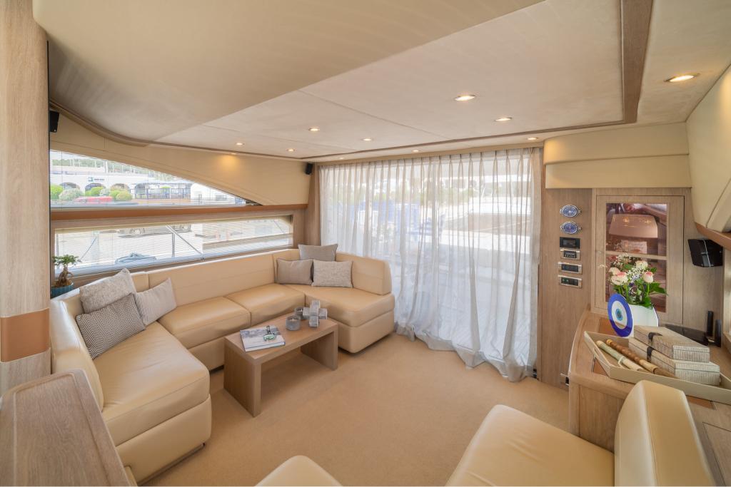 The Princess 62 Flybridge combines functionality with elegant, refined aesthetics. Therefore, she is the perfect option for selective guests, who are looking for a unique experience from a luxury yacht rental during their vacations in Mykonos.