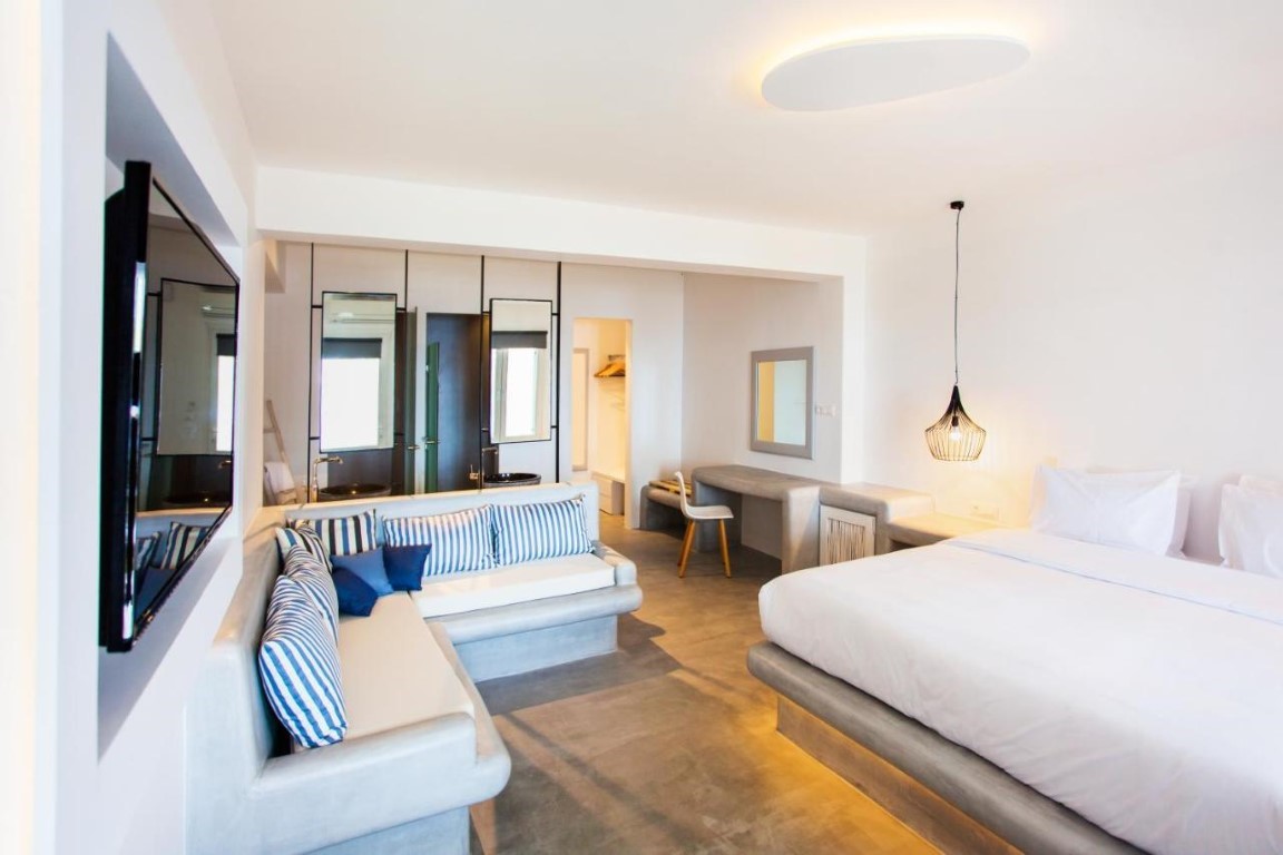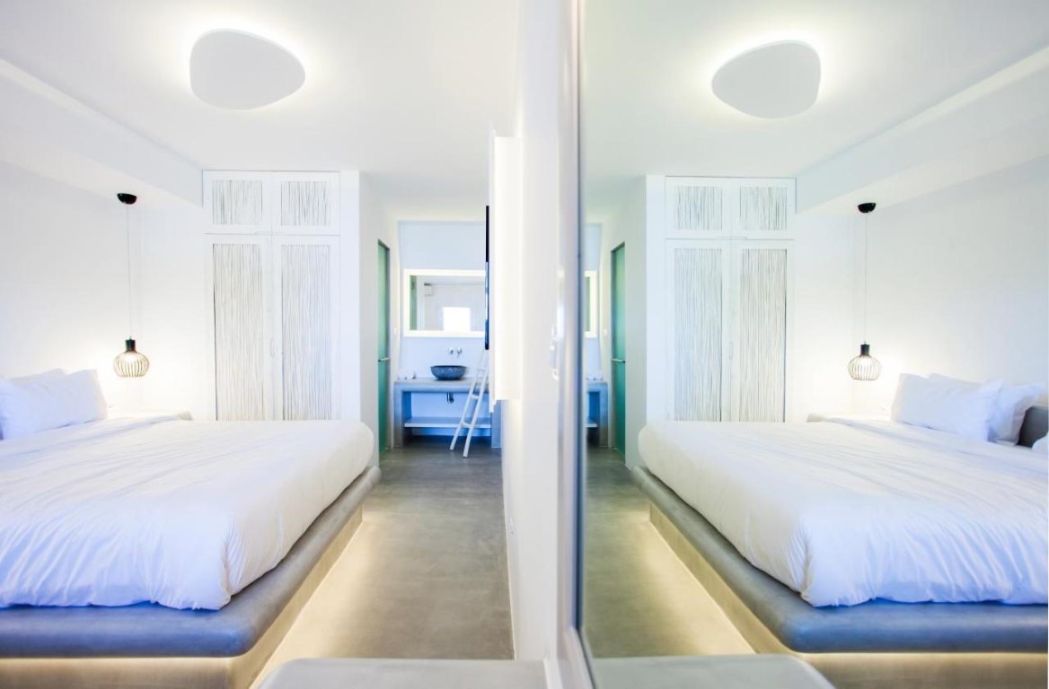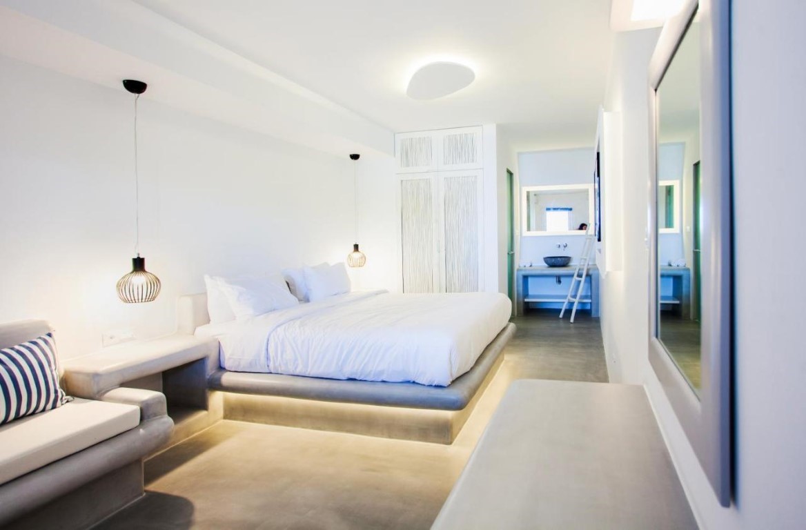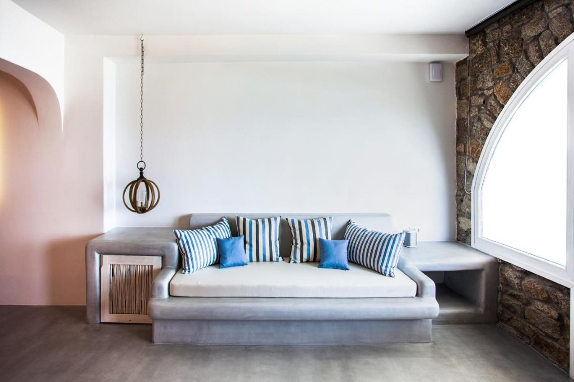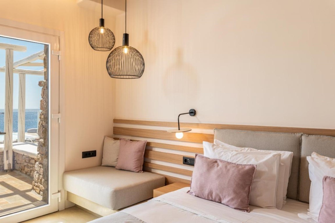 Beachside LuxurySeaView Residence in Mykonos consists of 18 elegant rooms and suites that offer an amazingly discreet and sophisticated luxury to their eclectic guests.