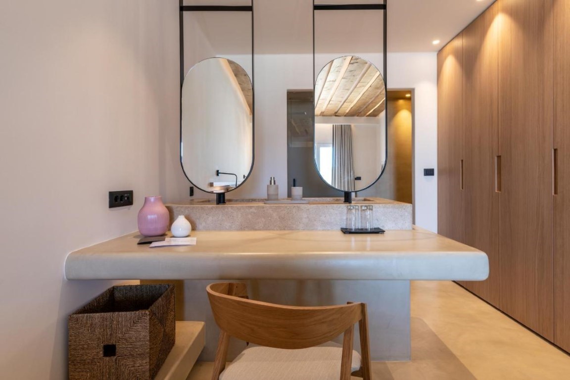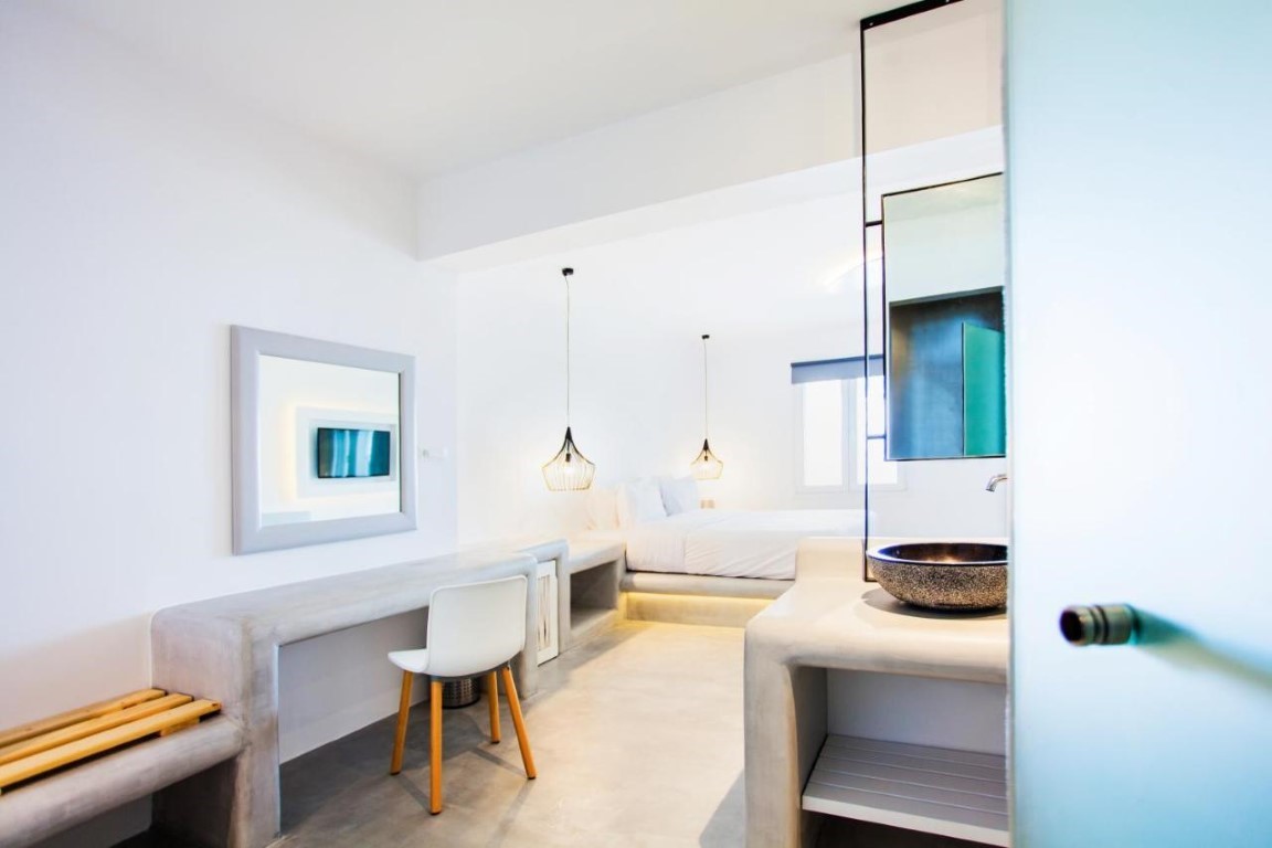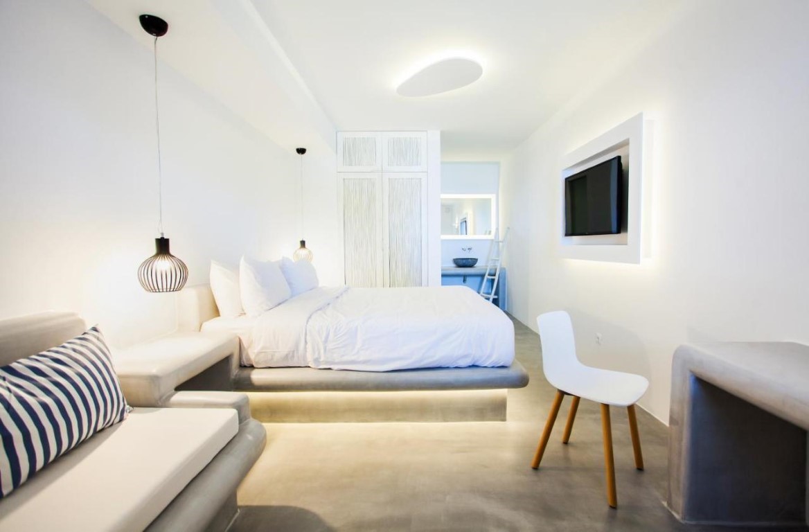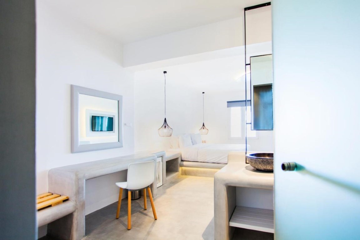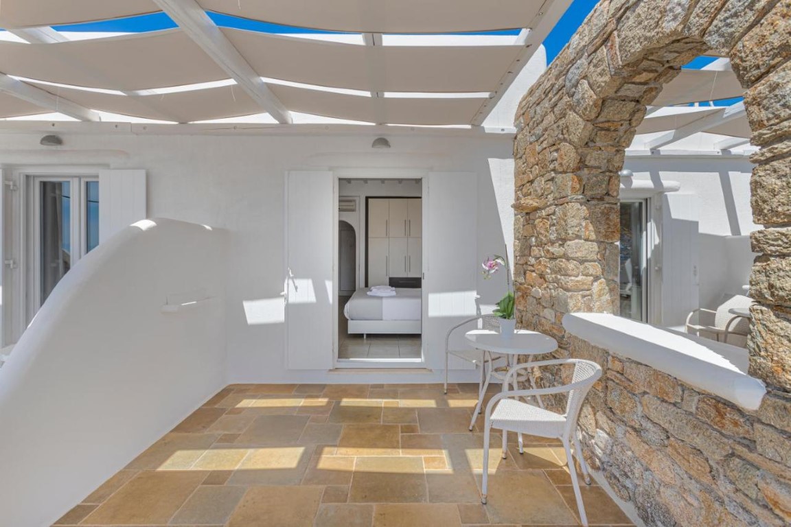Beachside LuxurySeaView Residence in Mykonos consists of 18 elegant rooms and suites that offer an amazingly discreet and sophisticated luxury to their eclectic guests.