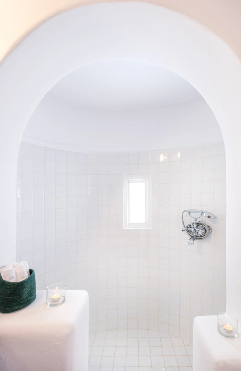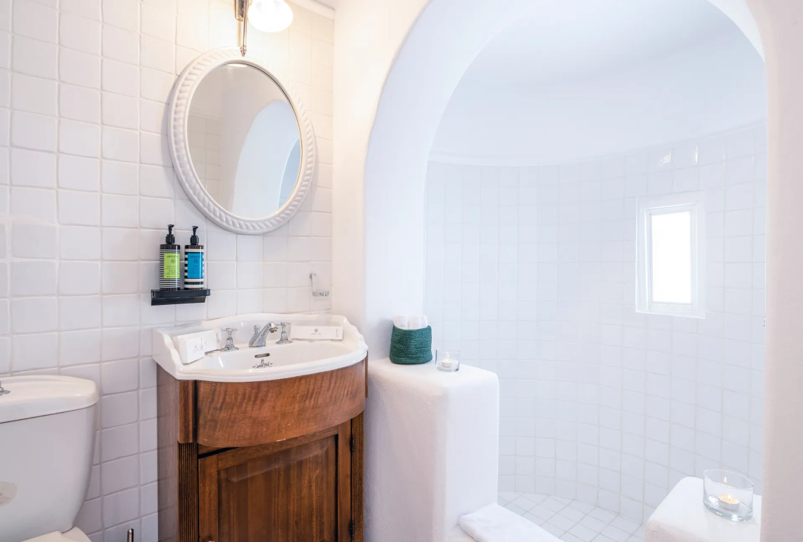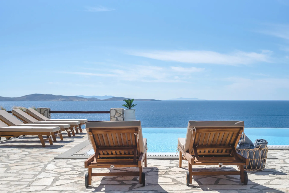 Drawing on the local architecture of Mykonos, Villa Afrodite rounded flowing shapes create a unique style that complements the whitewashed construction.