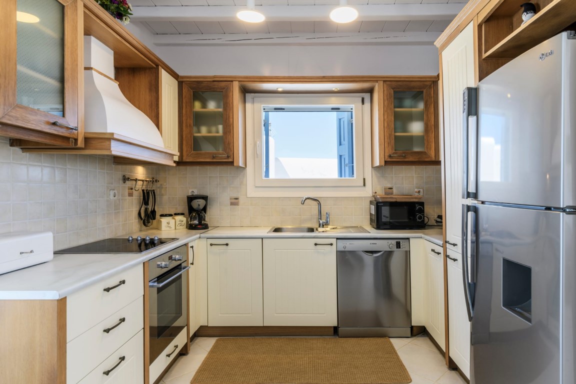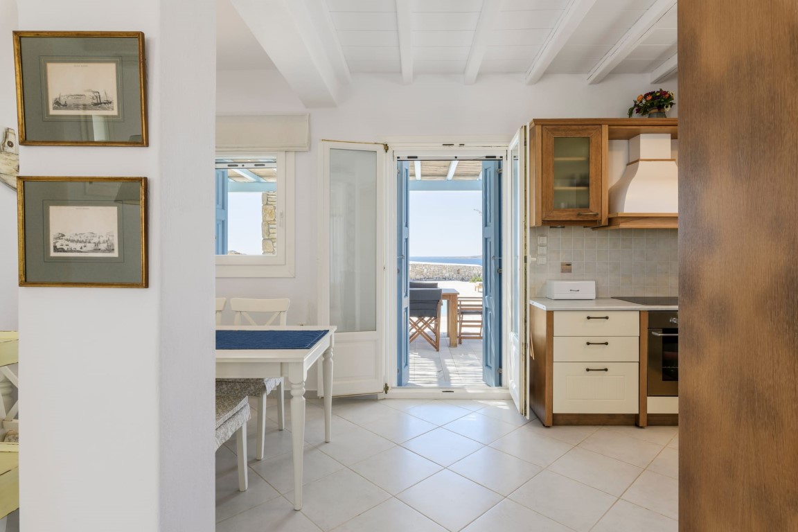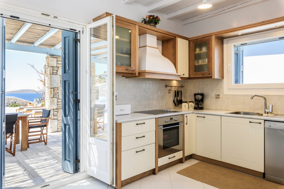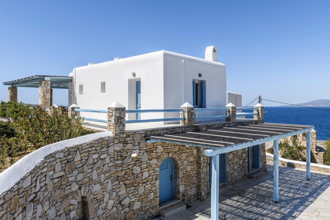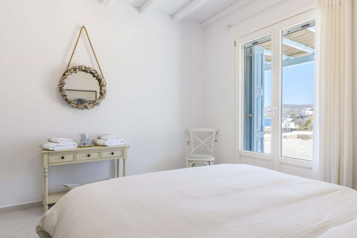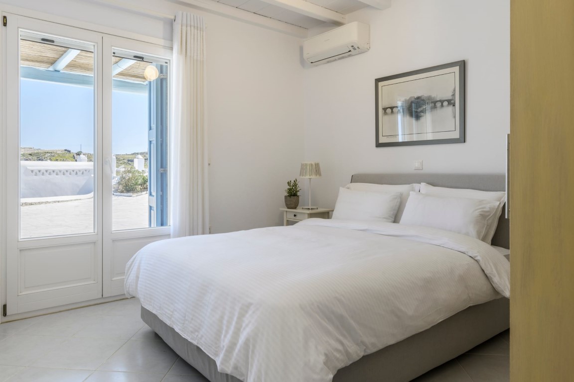 Located at Kanalia area, this villa offers unique views, overlooking the Aegean Sea, Delos and Rhenia Islands and Mykonos Town and it is also close to the Ornos Beach, where the famous Kuzina beach restaurant is located.