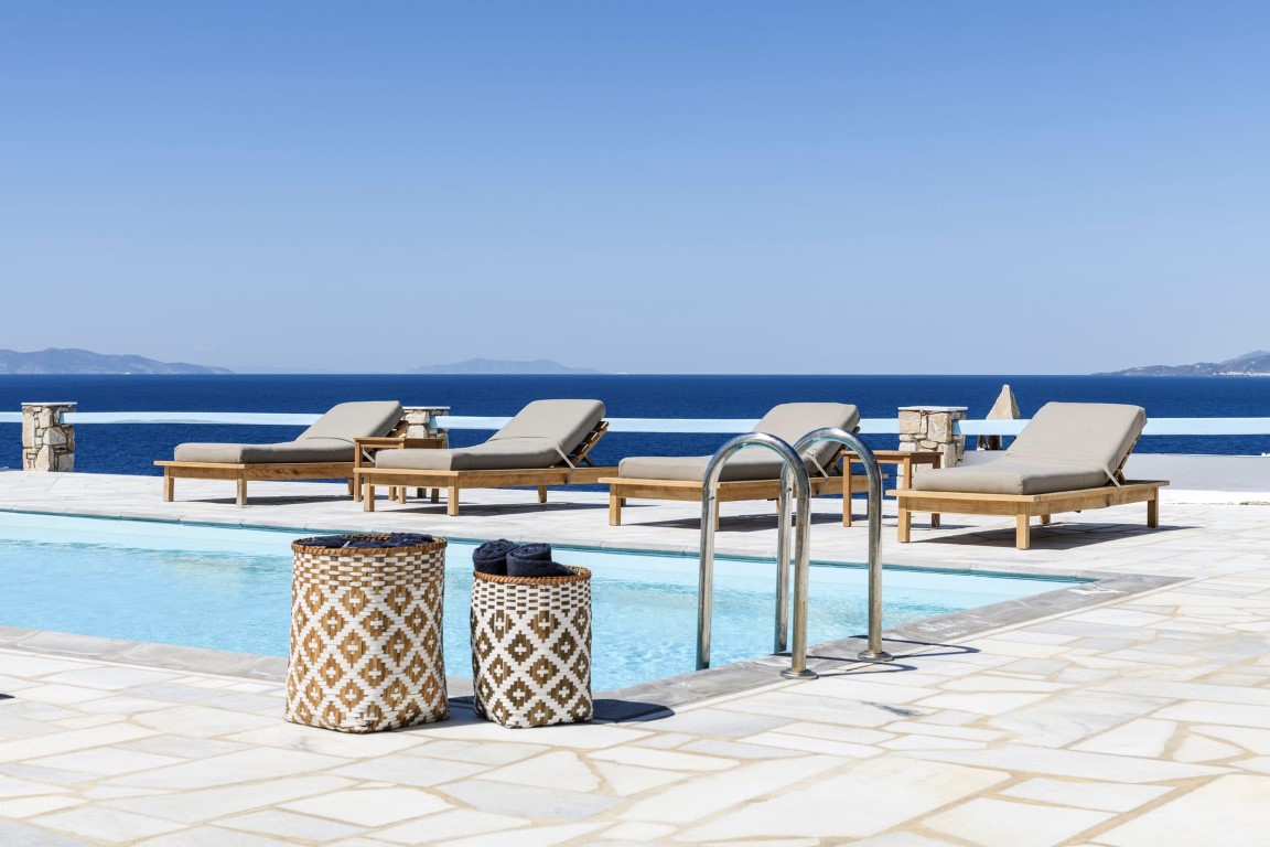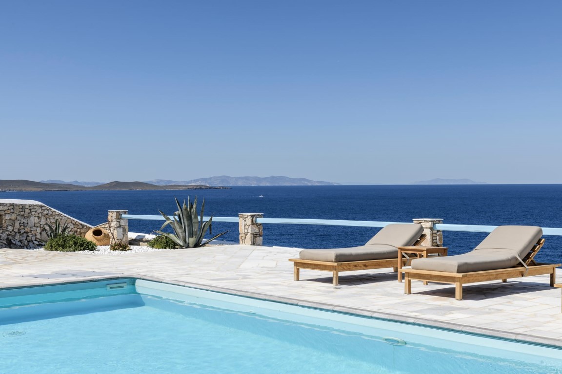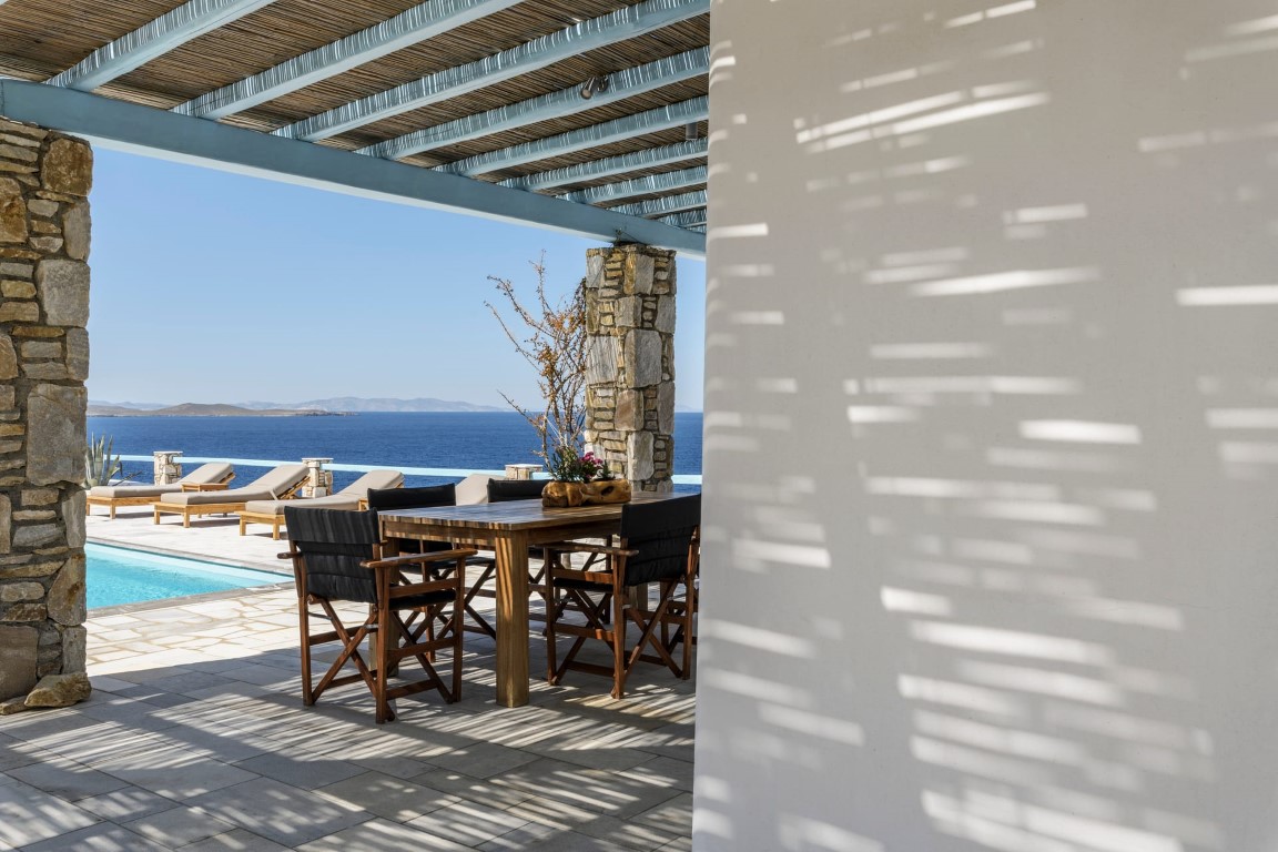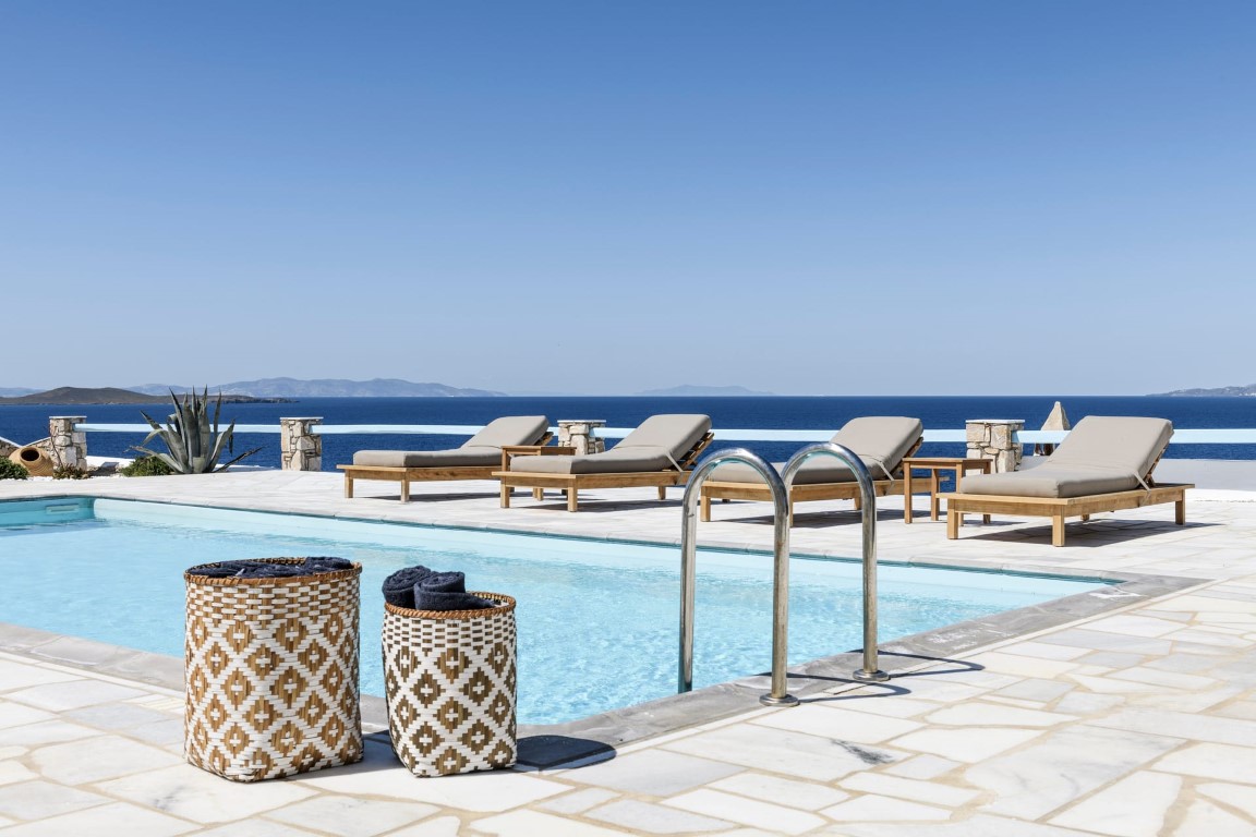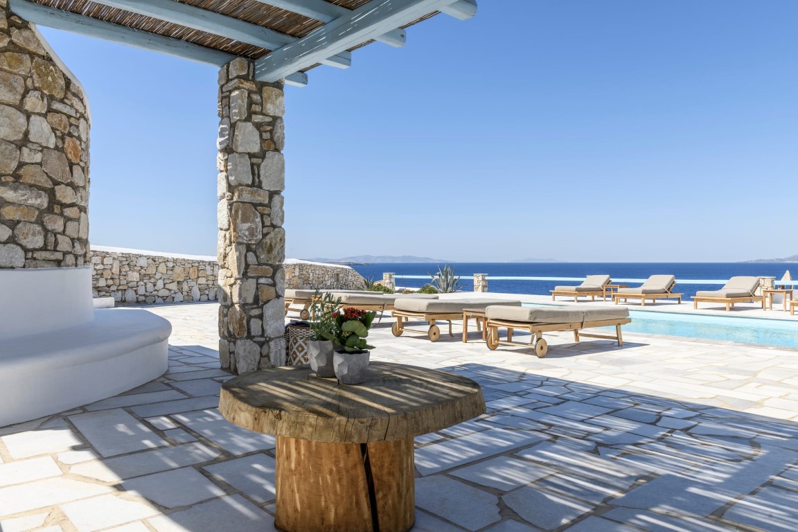 The pool, the exterior common spaces and the location of Villa White Star Mykonos make an ideal combination for a family vacation, couples retreat or small group gatherings that are looking for a unique experience.
